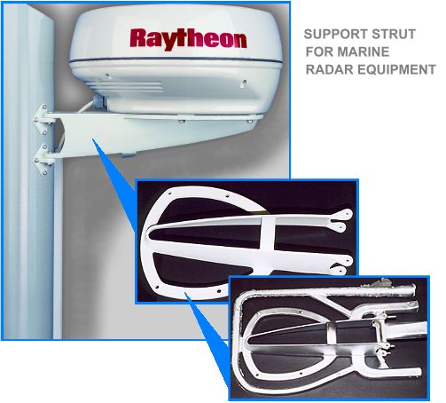 This casting is a radar platform used on sailing boats attached to the mast. Here it is shown as it comes from the die, after painting and fitted. (Photographs with kind permission of Scanstrut, Totnes.)